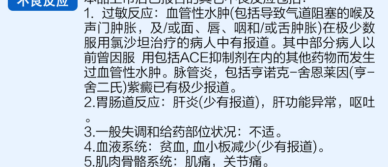 2.哺乳期妇女用药:尚不知道氯沙坦是否经人乳分泌。由于许多药物可经人乳分泌,而对哺乳婴儿产生不良作用,故应该从对母体重要性的考虑来决定是停止哺乳还是停用药物。