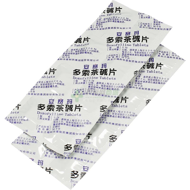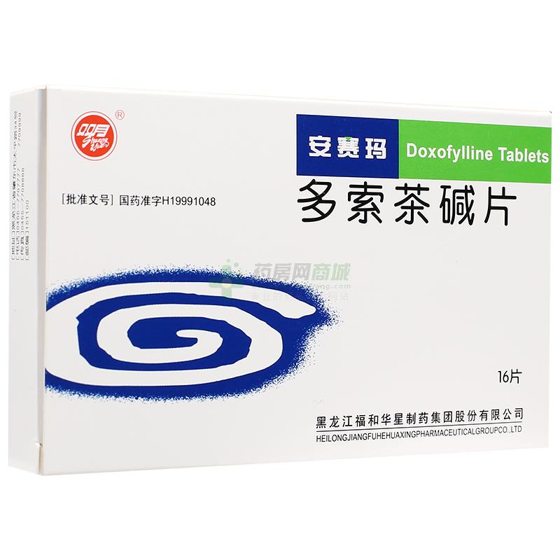 通  用  名:多索茶碱片英文名称:Doxoxfylline Tablets商品品牌:安赛玛汉语拼音:Duosuochajian Pian包装规格:0.2gx16片/盒剂型/型号:片剂生产厂家:黑龙江福和华星制药集团股份有限公司批准文号: