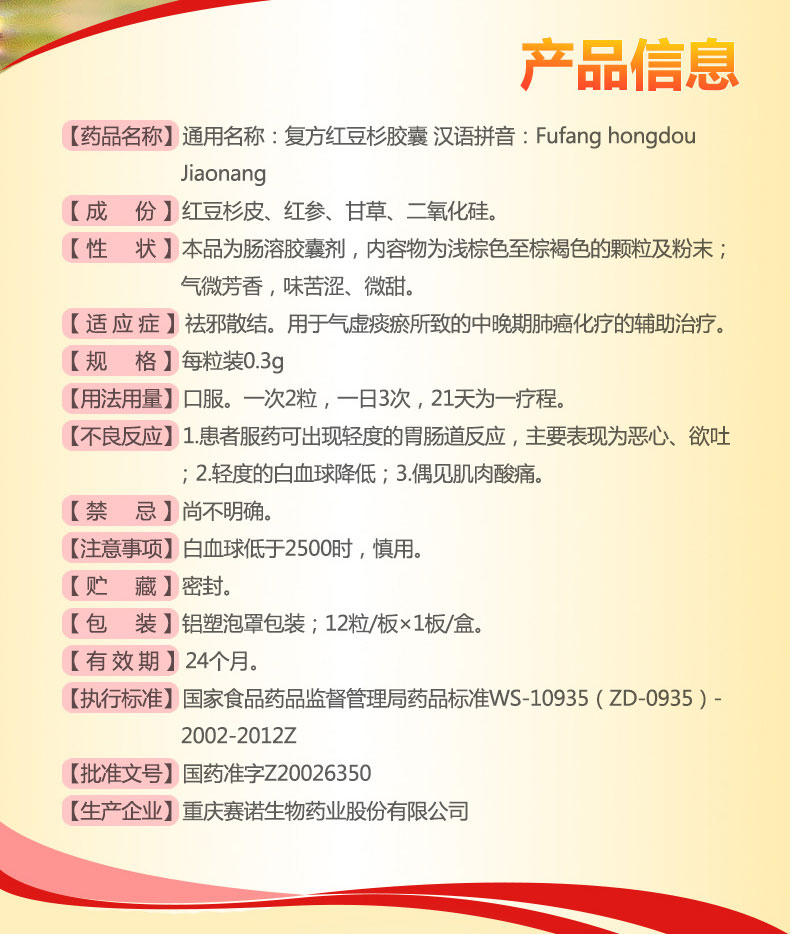 通用名称:复方红豆杉胶囊
