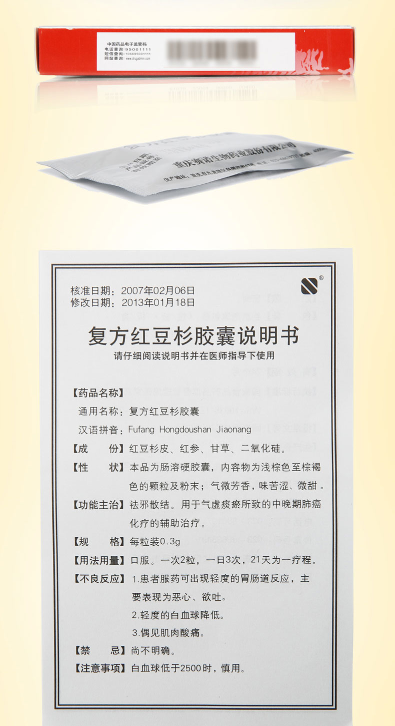 【主要成份】 红豆杉皮、红参、甘草、二氧化硅。