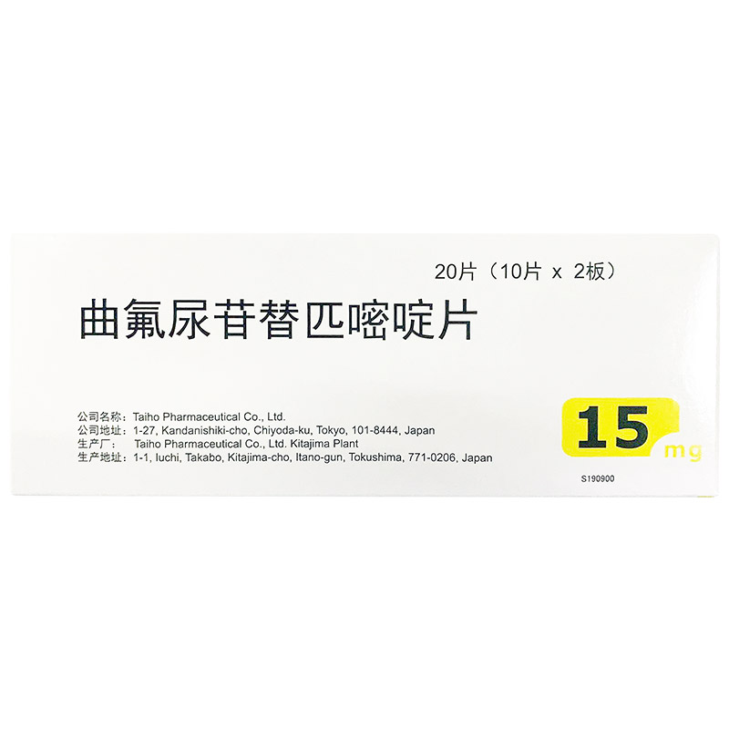 15mg规格:曲氟尿苷15mg,盐酸替匹嘧啶7.065mg(相当于替匹嘧啶6.14mg)20mg规格:曲氟尿苷20mg,盐酸替匹嘧啶9.420mg(相当于替匹嘧啶8.19mg)